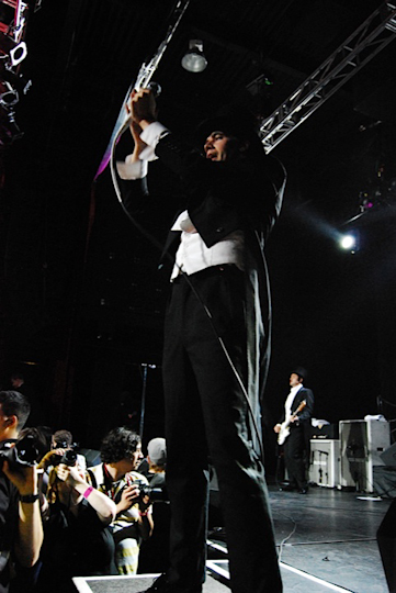 Believe it or not, it’s not all about Pelle (though I am amazed by his talent of doing flawless microphone and mic stand tricks). The rest of the Hives create an overall blast of raw, tight music. Guitarist Nicholaus Arson is the definition of a rock star as he runs from one side of the stage to the other and crowd surfs over hungry fans. Guitarist Vigilante Carlstroem and bassist Dr. Matt Destruction stoically keep the rhythm going, over Chris Dangerous’s amazingly fast-paced drumming. It’s genuinely hard to believe how the band keeps the high energy consistent over the 80 minute set. It’s safe to say that they blow most of their recordings out of the water, sadly making most of them hard to listen to after hearing them just kill it on stage.